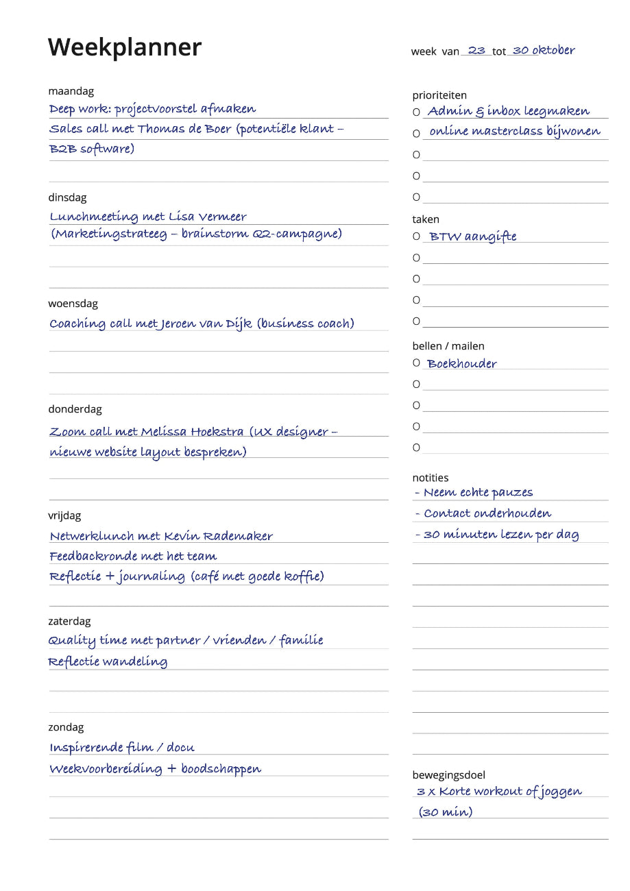✓ 48 pagina’s – afwisselend week- en dagplanners (voor 6 weken)